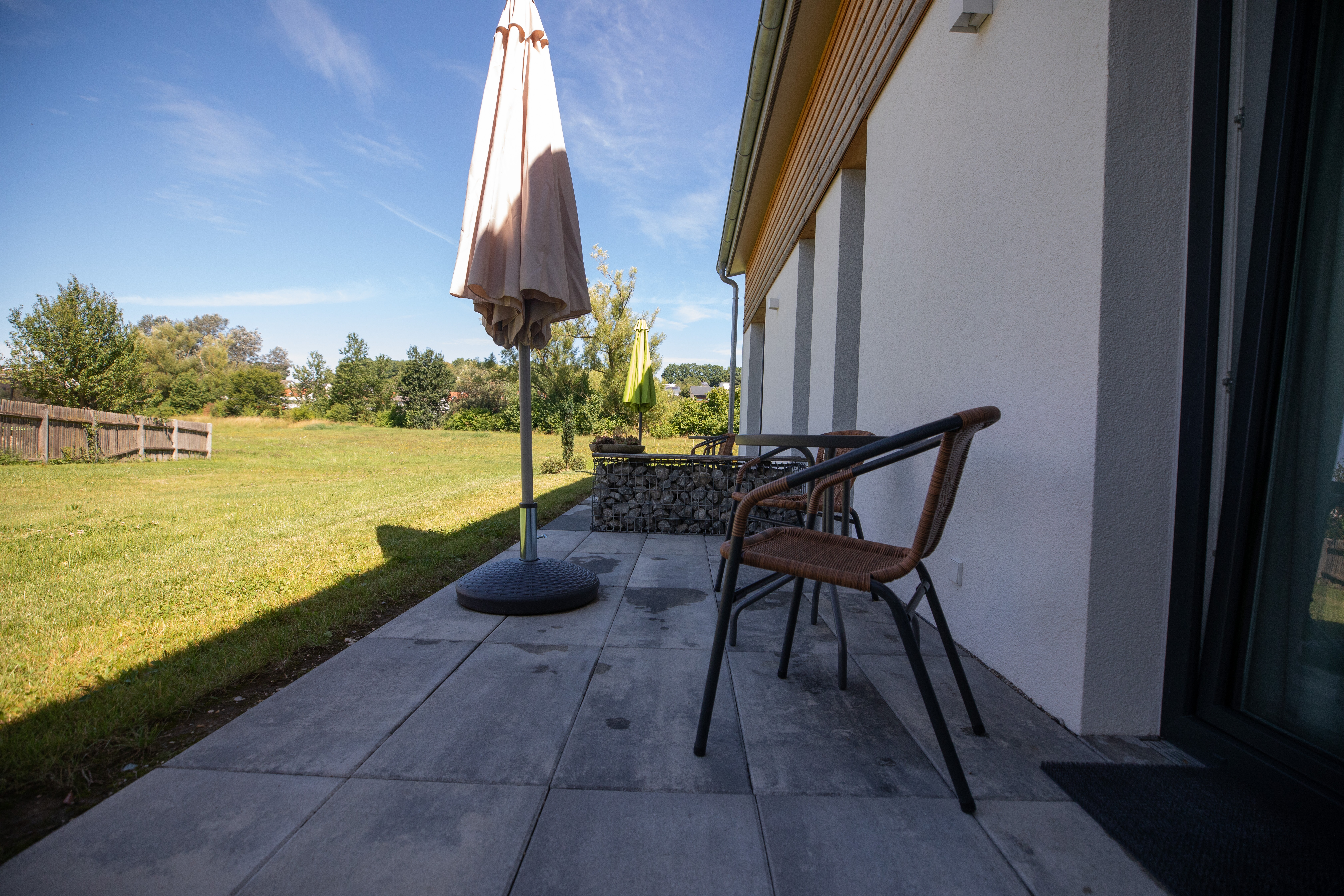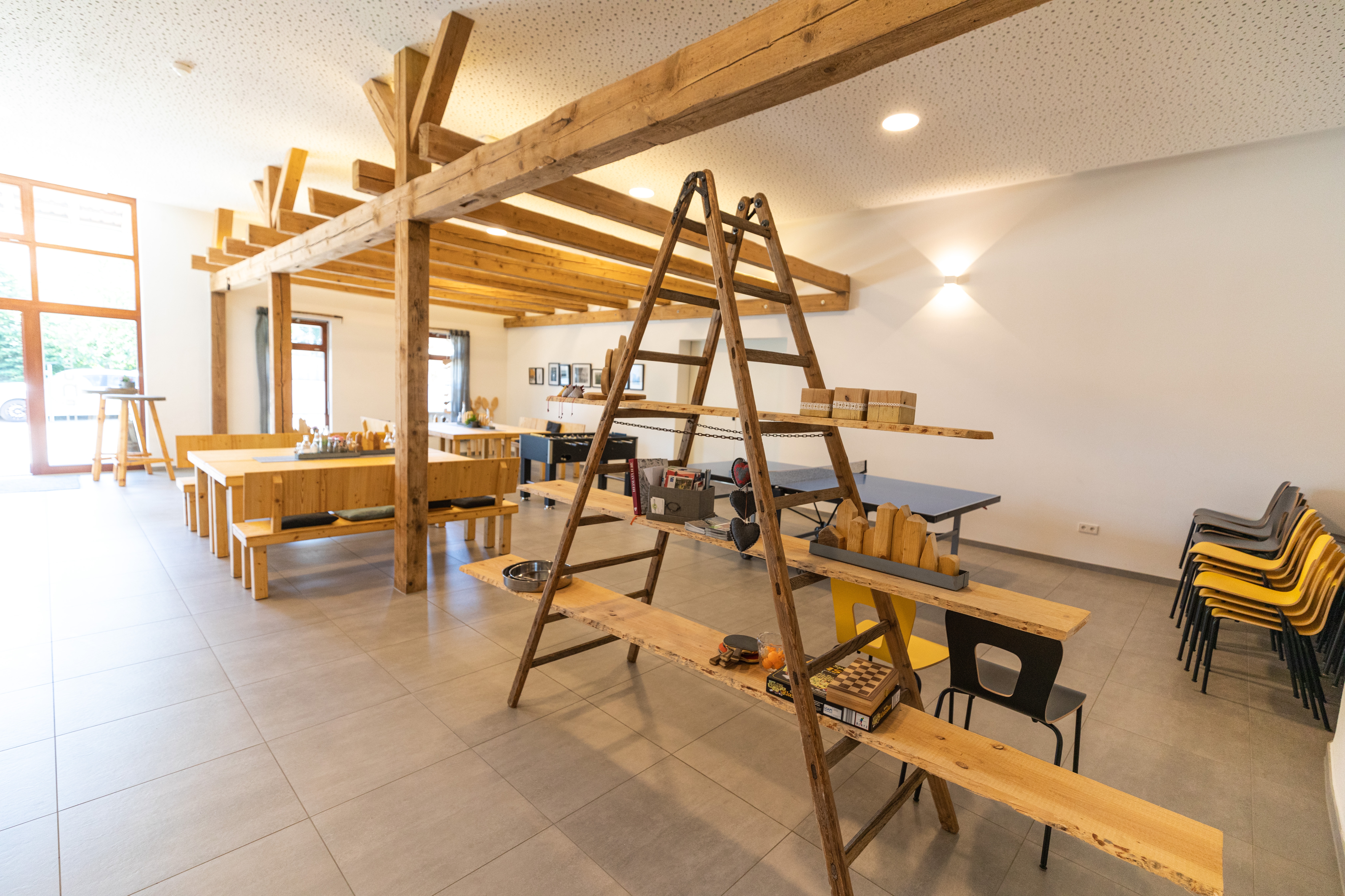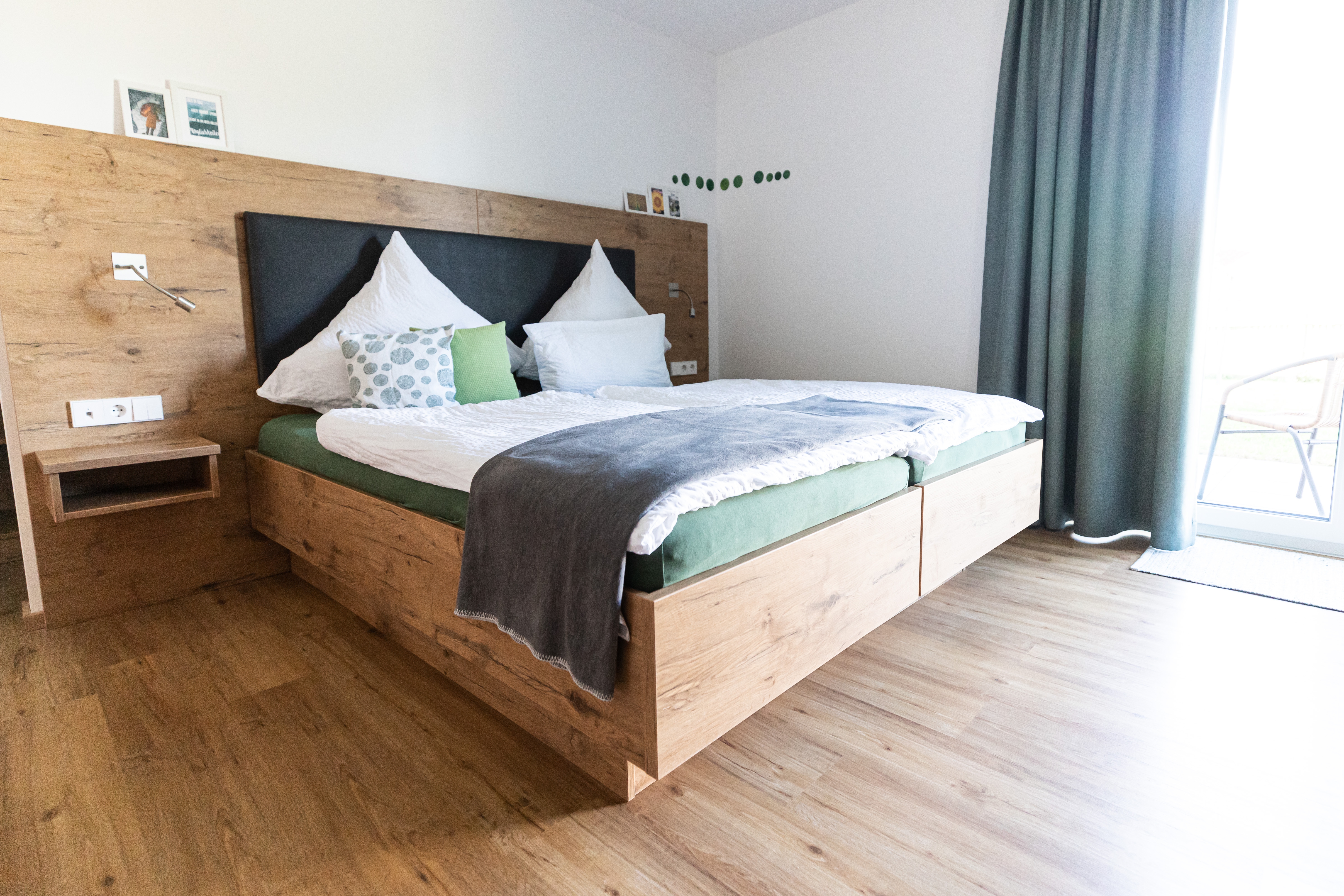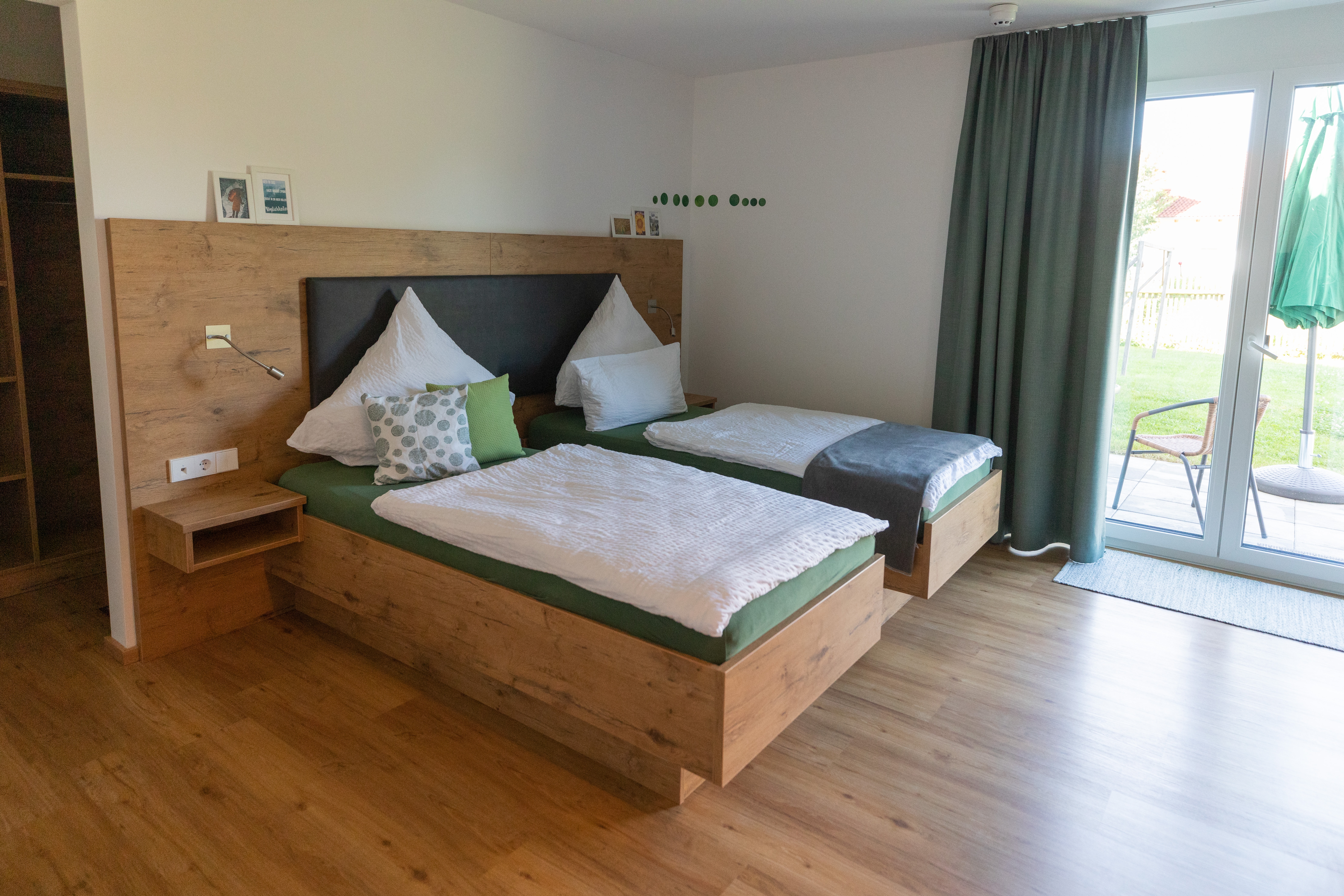 Das ursprüngliche Scheunentor ist heute markanter Eingang zu insgesamt sieben Apartments, jeweils mit Terrasse und Blick ins Grüne. Zusätzlich steht ein großzügiger Aufenthaltsraum zur Verfügung und bei schönem Wetter lädt unser einmaliger Freisitz zum Verweilen ein.